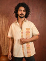 This off-white Hakoba shirt combines delicate subtle semi-circular printed motifs, creating a harmony of unique patterns. The breathable cotton fabric ensures comfort, and the minimalist colour palette offers timeless appeal. Flower-engraved wooden buttons add a spot of fun, enhancing the shirt's natural, artisanal charm. This shirt is ideal for summer days, casual brunches, or relaxed work settings with its light and airy feel. Its thoughtful design celebrates simplicity and craftsmanship, resulting in a versatile piece that exudes quiet elegance and refined style rooted in traditional textile artistry.